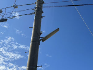 徳島市内でも住宅が密集するエリアや、街灯の間隔が広い場所では、一箇所の不点灯が夜間の視認性に大きく影響します。そこで今回は、計5箇所の防犯灯をすべて最新のLED防犯灯へ取り替えるプランをご提案し、施工させていただきました。